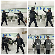 演練開始后,模擬工作期間有歹徒企圖強行進入大樓,威脅員工安全,安保人員立刻阻攔,門衛(wèi)用對講機呼叫報告組長。組長及各組員迅速到達現(xiàn)場(3分鐘之內(nèi)),各組員手持器械。組長緊急下達命令,立即啟動《反恐反暴應(yīng)急預(yù)案》。組長及時將附近員工疏散到安全地帶并撥打報警電話(110、120)。各組員第一時間使用鋼叉、盾牌、橡膠棒等將歹徒圍住。組長與歹徒交涉,周旋,聯(lián)手成功制服企圖入侵的歹徒,防止大樓員工受到傷害,隨后幾人把歹徒移交警察處置。