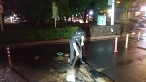 隨著傍晚的到來,車輛逐漸減少,張典軍和同事們再次回到8號崗亭前,準備徹底修復這個坑洞。他們移開墊在坑洞上的磚頭和沙袋,用專業(yè)的物料將坑洞填平,并在上面覆蓋上蓋板。在大家的共同努力下,坑洞很快就被修補好了,路面恢復了平整。