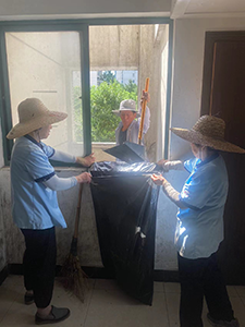 通風井平臺由于位置特殊,平時難以清理維護,導致平臺上容易積累大量的灰塵、垃圾和雜物,不僅影響通風效果,還容易滋生細菌蚊蟲,影響居民生活品質(zhì)。為了提高業(yè)主生活質(zhì)量,服務中心安排管理員不定期對通風平臺進行清理。
