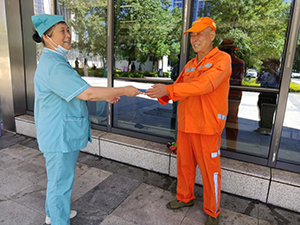 近日,王愛英師傅在兒科門診清潔玻璃時看見一部手機(jī)放在窗臺下,環(huán)顧四周無人來拿,她立即將情況上報主管,主管讓王愛英師傅保管好手機(jī)原地等待失主,若長時間無人認(rèn)領(lǐng)再把手機(jī)上交至服務(wù)臺。隨后,她便一邊工作一邊等待失主,大概過了三十分鐘左右,失主來醫(yī)院領(lǐng)取。在主管的陪同下,王愛英確認(rèn)來人為失主本人,隨后便把手機(jī)歸還給失主,失主對王愛英師傅拾金不昧的行為表示萬分感謝。