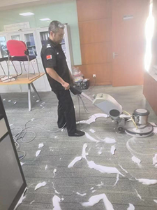 一樹一菩提,一沙一世界,生活的一切原本都是由細節(jié)造成的,而細節(jié)往往最容易被人忽視,殊不知這最不起眼的細節(jié)往往決定了事情的成敗,百分之一的失誤就會導致百分百的失敗。水務大廈項目部本著細節(jié)決定品質(zhì)的管理方針,為營造一個干凈舒適的辦公環(huán)境,在不影響甲方領導正常辦公的情況下,決定利用下班時間將甲方辦公室內(nèi)部地毯全部清洗一遍。收到通知后,參與此次清洗行動的保安員、保安員毫無怨言,拿起工具說干就干。他們先是用大功率的吸塵器將有污染的地方進行吸塵,再將清潔劑稀釋在地毯上全面噴灑,等待10-15分鐘后,污漬脫離纖維,再用洗地機抽洗,在洗地毯的同時用吸水機將已經(jīng)洗完的地毯吸干凈,讓地毯完全干透后才可以讓行人通過。地毯又重新恢復了光潔亮麗。這一項零打擾服務得到了甲方的贊揚。