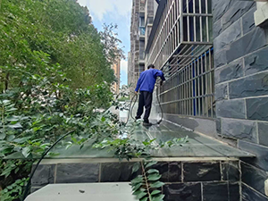 小區(qū)建造前期為了美觀,小區(qū)單元門上雨棚都為玻璃制作,隨著時(shí)間的推移,上面常有落葉和高空拋物垃圾堆積,嚴(yán)重影響業(yè)主的觀感,為了給業(yè)主創(chuàng)造更加舒適、優(yōu)美的生活環(huán)境,近日,項(xiàng)目保潔隊(duì)長不顧高空作業(yè)危險(xiǎn),帶領(lǐng)全體保潔員清掃單元門口玻璃頂棚。清掃現(xiàn)場,只見保潔隊(duì)長借助外設(shè)的管道,攀到小車庫頂棚上,用大掃把將雨棚上的垃圾一一掃落下來,然后用水槍頭沖洗一遍,將外墻縫隙中散落的垃圾都收拾了個(gè)干干凈凈,最終玻璃頂棚恢復(fù)了明亮。