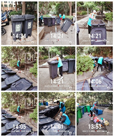 小區(qū)垃圾桶作為居民生活垃圾的主要投放處,如果不做好定期清洗,會淤積污垢、滋生細菌,影響居民的健康以及心情。為了給居民提供干凈整潔、身心舒暢的家園,乾盛蘭庭項目部保潔員利用休息時間,集中對小區(qū)內(nèi)所有垃圾桶進行了清洗,對有油漬的地方用洗潔精進行沖洗,并用干凈抹布仔細擦拭干凈,再放到空地晾干。
