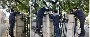 銹跡斑斑,燈光昏暗,投資廣場使用了將近20年的圍墻燈因為年久失修、有的路線已經(jīng)老化損壞而出現(xiàn)故障,影響大廈員工傍晚后的出行安全。為了節(jié)能降耗,保證投資廣場設(shè)施設(shè)備完好率達(dá)到百分之百,項目部決定對所有外圍路燈進(jìn)行維修。