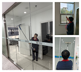 當(dāng)日,保潔阿姨早早準(zhǔn)備好專業(yè)的玻璃刮擦工具,如長柄刮刀、玻璃清潔劑、干凈的抹布等,精神抖擻地奔赴各個樓層。他們各自為戰(zhàn),在自己的工作區(qū)域內(nèi)進(jìn)行玻璃清潔。保潔阿姨們按正確的玻璃刮擦流程,先將清潔劑均勻噴灑在玻璃上,隨后手持刮刀,沿著玻璃表面,由上至下、從左到右,有條不紊地將污垢和水漬一一刮除,每一個動作都嚴(yán)謹(jǐn)而認(rèn)真,不放過任何一個角落。遇到頑固污漬,他們會耐心地反復(fù)擦拭,直到玻璃光潔如新。