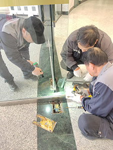 投資廣場大廈日常進(jìn)出人流量較大,冬季時玻璃門需保持常閉狀態(tài)。近期,崗位保安留意到關(guān)門時門體回彈異常,且伴有巨大聲響。為給業(yè)主營造安全便捷的工作環(huán)境,避免對來訪人員造成不良影響,物業(yè)迅速將此情況匯報給甲方。按常規(guī)流程,應(yīng)由甲方聘請專業(yè)人員進(jìn)行維修,然而,工程部的師傅們得知消息后主動請纓。憑借此前向?qū)I(yè)維修人員請教學(xué)習(xí)的經(jīng)驗,三位師傅有條不紊地商討拆卸方案。經(jīng)仔細(xì)檢查,確定問題出在地彈簧松動以及軸承卡滯。隨后,師傅們熟練地運用扳手和螺絲刀,精準(zhǔn)調(diào)整彈簧張力,清理軸承內(nèi)的異物,并細(xì)心涂抹潤滑油。一番操作后,大門終于恢復(fù)正常運作。