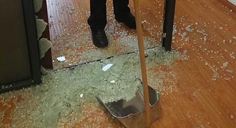 水務(wù)大廈管理部一大早就接到電話18樓的一扇玻璃門突然碎了,響聲驚天動地著實(shí)嚇壞了辦公人員。管理部立即通知保安隊(duì)長帶著鏟子、老虎鉗、掃帚等工具 |