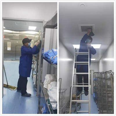 接到護(hù)士長(zhǎng)的電話后,項(xiàng)目?jī)?nèi)科主管馬上聯(lián)系機(jī)動(dòng)王師傅,跟他說(shuō)明情況后,王師傅完成手頭工作后就去供應(yīng)室?guī)兔。因(yàn)榻?jīng)常去那邊幫忙,所以王師傅一進(jìn)屋就熟練地開(kāi)始擦空調(diào)、燈具還有其他的平時(shí)打掃衛(wèi)生時(shí)夠不到的設(shè)施。