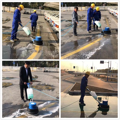 以前,清洗場地地標(biāo)線都是人工進(jìn)行清洗,不僅需要預(yù)備十幾個(gè)保潔員,且因保潔員在用地刷刷的時(shí)候用力有限,清刷出來的地標(biāo)線仍灰蒙蒙的。為此,物業(yè)在星期五下午不考訓(xùn)時(shí),將新配備的洗地機(jī)進(jìn)行了初步試用。項(xiàng)目經(jīng)理親自進(jìn)行教授此機(jī)器用法及使用時(shí)需注意事項(xiàng),考慮到需要掌控機(jī)器的力較大,保潔員都是女士,無法將其掌控,便安排了一個(gè)維保員來進(jìn)行學(xué)習(xí)及后期的清洗工作。在學(xué)習(xí)會(huì)機(jī)器的使用方法后,便先對(duì)一段黃線地標(biāo)線進(jìn)行清洗,與未清洗的地標(biāo)線進(jìn)行對(duì)比,確實(shí)干凈很多,也亮了很多。看到效果后,便對(duì)E區(qū)整場地的地標(biāo)線進(jìn)行清洗。雖說使用機(jī)器洗方便,不過,因場地設(shè)計(jì)特殊性,還是安排了3-4名保潔員在機(jī)器清洗后,一個(gè)用水管清水進(jìn)行沖洗,其他保潔員用大竹掃帚進(jìn)行清掃,防止積水。