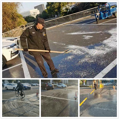 經(jīng)過一夜的大雪,30號(hào)早晨現(xiàn)場(chǎng)緊急動(dòng)員起來(lái),管理員、秩序維護(hù)員、保潔員全部都投入到化冰化雪的工作中來(lái),首先先環(huán)繞奧體中心全方位做了巡檢,從路面、崗?fù)さ轿蓍、樹木都做了詳?xì)的摸排,排除一切安全隱患,對(duì)各結(jié)冰區(qū)域鋪撒鹽屑加快融化。崗?fù)び捎诖箫L(fēng)雨雪天氣也跳電,現(xiàn)場(chǎng)秩序維護(hù)員及時(shí)報(bào)修送電,同時(shí)安排好現(xiàn)場(chǎng)車輛繞行。