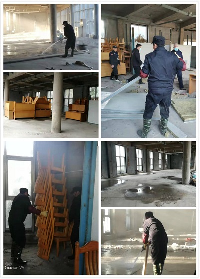 在清理過程中,保潔員不怕臟、不怕累,為了給甲方創(chuàng)造整潔的環(huán)境,保安員們搬桌子、凳子,保潔員們清掃整理,配合默契、干勁十足,高效地完成了本次的清理工作。經(jīng)過一上午的努力勞動(dòng),把該處理的都處理了,該擦洗的地方也擦洗干凈了,所有辦公用品、家具煥然一新。
