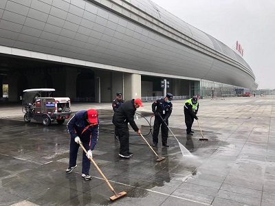 為了維護(hù)常州北站的衛(wèi)生清潔狀態(tài),為旅客提供旅客舒適的乘車環(huán)境,高正集團(tuán)物業(yè)管理部于2021年2月1日09時(shí),在車站陽光頂棚施工剛結(jié)束時(shí)積極迅速響應(yīng),組織人員對(duì)廣場(chǎng)道板進(jìn)行全面沖洗。