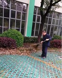 為美化工作環(huán)境,防止煙草項(xiàng)目火災(zāi)的發(fā)生,4月12日一大早,外圍保潔朱偉青上班就開始對(duì)煙草物流配送中心內(nèi)落葉進(jìn)行大面積清理,經(jīng)過兩個(gè)多小時(shí)的奮戰(zhàn),才把樹葉清掃干凈。雖然額外給員工增加了工作量,但保潔員卻一句抱怨的話都沒有,不怕苦與累而又默默無聞的精神值得我們每個(gè)人學(xué)習(xí)。