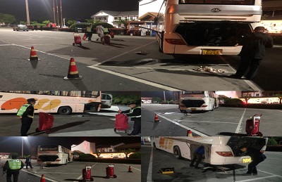 保安順著汽油的味源尋找,當(dāng)找到國(guó)旗臺(tái)前時(shí),看到一輛大客車的后箱打開一路漏著汽油。執(zhí)勤保安發(fā)現(xiàn)異常后立即跑步到崗?fù)つ脺缁鹌鳎贿吚脤?duì)講機(jī)匯報(bào)當(dāng)班負(fù)責(zé)人,一邊疏散人員。當(dāng)班負(fù)責(zé)人得知后立即組織其他保安人員一起參加險(xiǎn)情處理,負(fù)責(zé)人安排保安開啟消防栓,引來消防水,做好一切措施。負(fù)責(zé)人親自查看漏油,在確保漏油的情形下,迅速安排保安清理現(xiàn)場(chǎng)并報(bào)告相關(guān)部門。