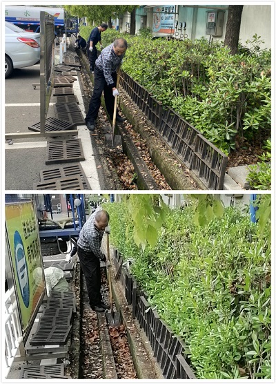 保安師傅先把污水溝蓋板掀開,將落葉清掃完畢,然后用鏟子把污泥鏟除,再用水管把地面沖洗干凈,接下來開展下水道疏通清理工作。由于后廣場(chǎng)污水溝都是槽罐車、送檢車輛沖入的磚塊、泥土,直接用鐵鍬鏟不動(dòng),維修師傅只能先用小鋤頭一點(diǎn)點(diǎn)撬開,然后再用鐵鍬進(jìn)行清鏟。在他們的共同合作下,終于讓我們守護(hù)的美好家園變得干凈整潔,讓人身心愉悅。