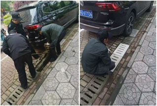 萬水美蘭項目部管理人員在日常巡查中發(fā)現(xiàn)外圍商鋪道路上有兩個窨井蓋破損嚴重,項目主管立即聯(lián)系保安和維修工人更換新的窨井蓋。維修人員先將破損的井蓋清理干凈,再將新的井蓋安裝好,確保居民安全出行。