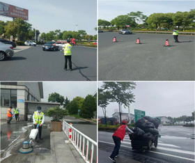 生產(chǎn)再忙,疫情防控不松懈。在五一節(jié)假日期間,服務(wù)區(qū)項目部增加人力對進區(qū)人員進行健康碼的掃描審核, 從嚴(yán)把好每一個關(guān)口。最后,項目部在節(jié)后也及時對東西區(qū)外場地面進行了清洗, 得到了甲方的一致好評。