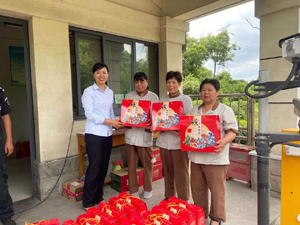 濃濃情誼、端午粽飄香、粽葉飄香,溫情暖心、轉(zhuǎn)眼又是一年端午節(jié),端午節(jié)是中華民族的重要傳統(tǒng)節(jié)日。為弘揚(yáng)傳統(tǒng)文化,紀(jì)念愛(ài)國(guó)詩(shī)人屈原,營(yíng)造濃厚的節(jié)日氛圍,在端午的來(lái)臨之際,6月8日上午高正集團(tuán)物業(yè)管理有限公司行政科開(kāi)著貨車拖著滿滿一車慰問(wèn)品來(lái)到我們常高速項(xiàng)目鄒區(qū)服務(wù)區(qū)南門,提前為她們送去節(jié)日的祝福,在鄒區(qū)服務(wù)區(qū)南門物業(yè)保安人員齊聚一堂熱鬧非凡。幫忙卸貨的卸貨,幫忙分發(fā)禮物的分發(fā)禮物,項(xiàng)目主管為她們送上了咸鴨蛋、粽子等物品,讓她們感受到公司的溫暖與關(guān)懷,端午節(jié)的祝福和節(jié)日的慰問(wèn)。