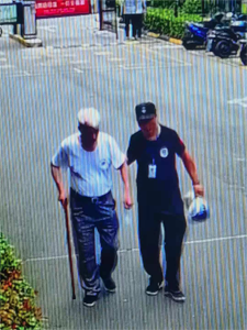 他仔細(xì)詢問老人是哪幢住戶,老人回答是3幢乙單元的901住戶,今年已經(jīng)91歲了。隨后保安師傅攙扶著老人,將其平安護(hù)送到家。
