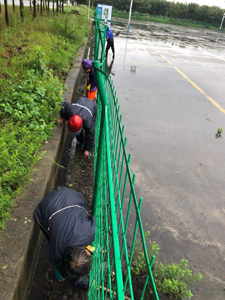 科三大車場(chǎng)地本是A2大車訓(xùn)練的場(chǎng)地,現(xiàn)被改造成A2大車考試的場(chǎng)地。此場(chǎng)地因原本只用做訓(xùn)練從未進(jìn)行過(guò)打掃,地溝也從未清理過(guò);現(xiàn)因要用作考試,為確保不影響大車正?荚,我部安排了兩名保潔對(duì)大車場(chǎng)地邊的淌水溝進(jìn)行清理工作。地溝寬度較窄,里面全是磚頭,泥土,鐵鍬鏟不動(dòng),只能用小鋤頭先將磚頭扒開,用手撿出來(lái)。這兩日梅雨日,下著大暴雨,地溝堵塞大車場(chǎng)地邊角被淹全是水,地溝里的泥變成了爛泥,既有水又有泥,這又給保潔增加了清理難度。我們的保潔員身穿雨衣、腳穿雨鞋、手帶乳膠手套,冒著雨在進(jìn)行清理。一名保潔用小鋤頭將將地溝里的磚頭進(jìn)行扒起,用手一塊一塊的揀出,另一名保潔員用圓頭鐵鍬側(cè)著對(duì)地溝里的泥進(jìn)行清鏟,雖然她們?nèi)蔽溲b,仍被淋濕,身上也沾滿了泥,她們?nèi)允锹耦^苦干,不辭勞累,雖體力有限,但干活卻是不含糊的,既然要做,那就要做到最好。