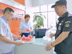 為了讓物業(yè)家人們在炎炎夏日感受到一份清涼,公司提前給大家準備了防暑降溫物品,項目主管也特意安排每天給大家采購西瓜,為大家送上一份夏日清涼。每天下午,主管在辦公室把切好的西瓜放在盤子里,送到奮戰(zhàn)在一線的員工手中。吃上甘甜的西瓜,大家心里都覺得很溫暖,因為這一片片西瓜不止是夏日的一份清涼,更是表現(xiàn)出高正集團對家人團結(jié)關(guān)愛。公司也一直秉承著“以客戶為中心,以奮斗者為本”的服務(wù)理念,一如既往的為大家送上優(yōu)質(zhì),貼心,周到的服務(wù)。