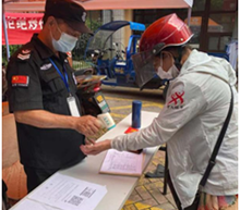 疫情再次爆發(fā)的第一時間,萬水美蘭項目物業(yè)經理放棄了休息時間帶領物業(yè)全體工作人員對小區(qū)每個門崗進行體溫測量,外來人員登記、詢問,門崗小喇叭也在循環(huán)播放,再次為業(yè)主敲響警鐘,保潔也對小區(qū)公共部位、電梯按鈕等進行消殺。