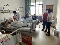 這天上午,我項目搶救大廳崗位員工湯安華因腰傷住院手術(shù),1個月以前他因推送病人到病房,在抬病人到病床上時腰部不幸受傷。但因項目缺人,他堅持綁著腰帶繼續(xù)上崗了1個月,到9月8日去復(fù)查時,醫(yī)生建議必須動手術(shù)并需修養(yǎng)至少一個月,我項目副經(jīng)理杜翠翠和主管潘云媛在其做完手術(shù)后,代表公司進行慰問,愿其早日康復(fù),回歸崗位!