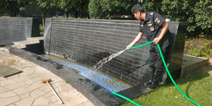 秋天已經悄悄來臨,樹葉有了黃的味道,白天也不是那么炎熱了,站在水務大廈的門口一眼望去,環(huán)境整潔,天空風輕云淡。項目經理決定在這個風和日麗的一天,將大廈外圍的景觀池全部清洗一遍。
