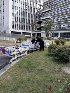 這天,曾經(jīng)理帶領(lǐng)我們把床位從三樓的重癥監(jiān)護(hù)室推到一樓空曠的地方,對(duì)幾張床位和床墊進(jìn)行沖洗。首先他們把床下面的電機(jī)用塑料袋綁好,然后接上高壓水槍,對(duì)用餐架、防護(hù)欄桿、床頭以及床尾等地方進(jìn)行全方位的沖洗,然后再把床墊也進(jìn)行了一次性無死角的清洗,最后把病床和墊子放在太陽底下晾曬,通過紫外線來進(jìn)行消毒,我們對(duì)床進(jìn)行了一次全面而細(xì)致的消毒工作。最后在太陽落山之前把床推回了重癥監(jiān)護(hù)室。醫(yī)務(wù)工作者對(duì)我們的工作成果進(jìn)行了肯定,床位變得煥然一新,也能更好的服務(wù)患者。
