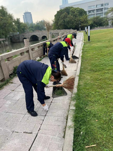 這天,所有保潔早早地集合在指定地點(diǎn),身著統(tǒng)一干凈的制服,攜帶著各自的清潔工具,精神滿滿地開(kāi)始了今天的清潔作業(yè)。他們分工明確,合理安排,一部分人員負(fù)責(zé)清掃水泥地面的灰塵和泥塊,另一部分人員重點(diǎn)負(fù)責(zé)綠化帶和花壇內(nèi)的枯草,樹(shù)枝,石塊及落葉的清理與撿拾。在配合完成校園集中區(qū)域的清潔衛(wèi)生后,大家又集中來(lái)到河邊的草地邊進(jìn)行清理,她們不但將草地上的雜物清理干凈了,還將河岸護(hù)欄底部生長(zhǎng)的雜草徒手拔出,并用小鏟子清理掉部門(mén)殘留在縫隙中的雜草和小石子。大家齊心協(xié)力,經(jīng)過(guò)一個(gè)上午的辛苦勞作,雖然大家都累得出了汗,卻沒(méi)有一個(gè)人叫苦叫累。