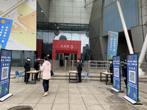 為了便于管理和疫情防控工作的開展,賽事期間我們的安保人員全員在崗,輪班休息的人員也必須隨時待崗,領導管理人員不定期隨時巡查和指導工作。體育館3號口是運動員們進入場館的主通道,在比賽正式開始之前,我們就提前在3號門崗外的場地,布置好了宣傳彩旗和展板,布置了三個通道的疫情檢查工作臺和隔離護欄,配備了酒精噴霧、免洗手消毒液及口罩等防疫物資,在通道兩側位置設置了多福醒目的巨型場所碼展板。比賽當日,我們的安保人員個個精神抖擻,身著統(tǒng)一的制服、黑皮鞋、禮帽和口罩,胸口佩戴著各自的工作牌,對所有進入場館人員逐一進行身份核驗和體溫測量等工作,引導各自隊伍進入場內劃分的專用比賽和休息區(qū)域。