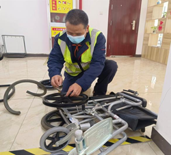 “賴師傅,西區(qū)服務(wù)臺的輪椅輪胎到了,麻煩來安裝一下!”看到工作群里西區(qū)服務(wù)臺工作人員發(fā)的信息,賴師傅立即從東區(qū)大廳一路快走趕往西區(qū)。到達西區(qū)了解現(xiàn)場情況后,賴師傅前往工具間拿來了各種安裝工具準備進行正式安裝,然而開局不利,在賴師傅一番檢查之下,終于發(fā)現(xiàn)了問題所在,原來問題出在軸承尺寸上面,正當賴師傅一籌莫展時,內(nèi)勤丁,搸е鴸|區(qū)服務(wù)臺工作人員趕到了現(xiàn)場,與賴師傅一起商量如何解決這一問題,是找專業(yè)人員修改一下軸承尺寸,還是重新購買一個新的輪胎,大家紛紛發(fā)表自己的建議,終于,功夫不負有心人,賴師傅憑借著自己多年的工作經(jīng)驗,對輪胎進行了處理,并成功安裝上輪椅。為了保證輪椅能夠正常使用,賴師傅找來了幾個保安人員,進行承重測試以及穩(wěn)定性測試,待一切測試正常,才算是正式完工,這也體現(xiàn)了賴師傅盡職盡責的工作態(tài)度和工作作風。