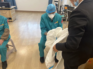 近日,項(xiàng)目部組織對師傅進(jìn)行防護(hù)服的穿脫培訓(xùn),我們的師傅阿姨相互操作輪流完成。為鞏固大家“穿脫防護(hù)服”的技能,主管對每個師傅都進(jìn)行了的點(diǎn)評與細(xì)節(jié)指導(dǎo),并指出了在穿脫防護(hù)服時容易出現(xiàn)的問題,幫助師傅全方位了解防護(hù)服的穿脫作業(yè)流程。我們準(zhǔn)備一次性帽子、醫(yī)用防護(hù)口罩、護(hù)目鏡或面屏、鞋套、靴套、手套及穿衣鏡,并選擇合適型號,檢查有效期及是否符合質(zhì)量標(biāo)準(zhǔn)。按照國家《醫(yī)務(wù)人員手衛(wèi)生規(guī)范》的要求進(jìn)行手衛(wèi)生,取適量皂液或手消毒劑均勻涂抹雙手按規(guī)范揉搓。通過此次培訓(xùn),進(jìn)一步提升了全體員工的安全防護(hù)意識,為在今后工作中有效預(yù)防院內(nèi)感染奠定基礎(chǔ)。
