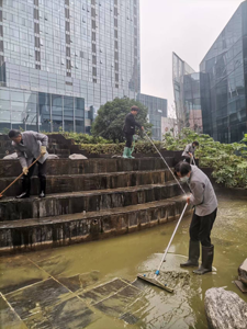 為給業(yè)主創(chuàng)造一個(gè)良好、優(yōu)美的工作環(huán)境,傳媒中心保潔員們對(duì)景觀(guān)池進(jìn)行了一次徹底的清理,早上,傳媒中心還少見(jiàn)人影,保潔員們已經(jīng)換好工裝,準(zhǔn)備開(kāi)始對(duì)景觀(guān)池進(jìn)行清理工作,他們帶上手套,穿上雨靴,先對(duì)池底淤泥進(jìn)行清理。他們一個(gè)人拿著高壓水槍對(duì)池底淤泥沖刷起來(lái),這邊再把泥水拖進(jìn)排水溝,泥水雖然沾濕了褲腳,但他們毫無(wú)在意。他們對(duì)每一個(gè)臺(tái)階都進(jìn)行沖刷、清洗,不放過(guò)每一個(gè)角落,為的就是給我們業(yè)主以及員工一個(gè)美好的感受。經(jīng)過(guò)了半天的清理工作,景觀(guān)池?zé)ㄈ灰恍隆?/span>