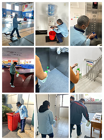 我們的保潔在做好自身防疫措施的同時(shí),每天都定時(shí)對(duì)各個(gè)區(qū)域消殺。為了避免交叉感染,項(xiàng)目主管讓保潔錯(cuò)峰消殺,每天在場(chǎng)館開(kāi)放前先消殺一次,等整場(chǎng)活動(dòng)結(jié)束后或人流量較少時(shí)再次消殺。垃圾桶、門(mén)把手、電梯間、飲水機(jī)等各個(gè)部位重點(diǎn)消殺,由于每個(gè)場(chǎng)館面積較大,在定時(shí)噴灑的同時(shí),保潔還將濃氯水噴灑在排拖上進(jìn)行地面擦拭消毒,每天的保潔工作結(jié)束后再將清潔用品用濃氯水清洗消毒晾曬方便第二天使用。保潔實(shí)行更加嚴(yán)格、更高標(biāo)準(zhǔn)、更多頻次地定時(shí)定量清理、消殺,持續(xù)用力、精準(zhǔn)發(fā)力,保持城區(qū)環(huán)境衛(wèi)生干凈整潔,堅(jiān)決打贏疫情防控阻擊戰(zhàn)。