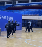 根據(jù)演練方案、人員安排和物資配備,演練小組提前準(zhǔn)備好了對講機(jī)、假刀具、鋼盔、防刺服、防暴盾牌、鋼叉、防暴棍、和指示牌等物資,并由公司員工分飾劫匪,反恐組成員及游客等。上午十點開始,巡邏保安發(fā)現(xiàn)劫持游客搶劫現(xiàn)金的劫匪,立即撥打110報警電話,并迅速用對講機(jī)向保安主管報道,請求協(xié)助現(xiàn)場處理,并阻止其他游客靠近。館長在趕往處理的途中,迅速聯(lián)系和調(diào)動反恐組成員趕往劫持事件發(fā)生的體育館大廳,進(jìn)行現(xiàn)場處理。到達(dá)現(xiàn)場后,我方工作人員和劫匪形成僵持局面,保安主管利用對話和談判,轉(zhuǎn)移劫匪注意力,盡力拖延時間,直至警察趕到,再將現(xiàn)場交由公安機(jī)關(guān)處理,至此演習(xí)結(jié)束。