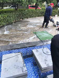 工期雖然結(jié)束了,景觀池也正常投入了使用,但是施工方留下的爛攤子卻沒有完全收拾干凈,施工過程中,工程隊(duì)留下一些石灰水泥污漬在池子邊沿,看上去甚是不整潔。近日,項(xiàng)目經(jīng)理就安排員工們立即拿著刷子、鏟刀、釘子,開展了清理工作。池子邊上有很多沒清理掉的水泥,已經(jīng)凝固很難清理,我們就用鏟刀一點(diǎn)點(diǎn)用力鏟,鏟不掉的就用鋼釘鉆,榔頭敲,敲完之后再用刷子刷干凈,慢慢地一點(diǎn)一點(diǎn)地,進(jìn)行清理。就這樣過了兩個(gè)多小時(shí),池子周圍的石板終于被沖刷干凈了,景觀池再一次煥然一新。我們把施工方留下的問題解決了,甲方夸我們深刻踐行公司日行一善的工作理念,為他們解決了重大難題。