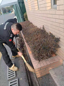 一大早煙草物流項(xiàng)目主管張健就安排兩名安保人員進(jìn)行清理,他們蹲下身來(lái)費(fèi)力地掏著溝渠里面的雜物,特別下面的索性伸出手來(lái)直接用手抓那些帶著味的淤泥,他們不怕臟不怕苦,直到把每一處溝渠清理干凈為止,保障排水通的暢通。
