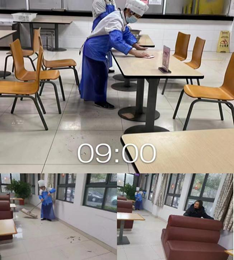 只見她們搬開了所有的桌子和沙發(fā),仔細的用掃把和拖把清掃著每一處,除此之外,細心的阿姨們還會在拖把拖干凈以后用消毒水進行了一輪全面的消毒,桌面上的污垢也沒有放過,全部用威猛和84消毒液消毒,在一陣忙碌過后,食堂也變得干凈了起來,項目經理一邊擦拭著額頭的汗一邊說,俗話說病從口入,在吃的問題上,一定要嚴格把關,這樣才能讓業(yè)主放心!