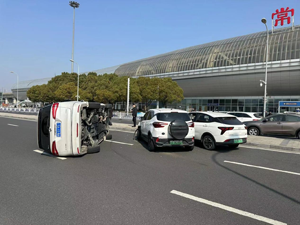 項(xiàng)目經(jīng)理劉源收到消息后,立即聯(lián)系了甲方安全負(fù)責(zé)人杭經(jīng)理和綜治辦蔣主任并前往現(xiàn)場查看有沒有旅客被困在車內(nèi),好在旅客兩個(gè)人已自己從天窗爬出,隨即項(xiàng)目經(jīng)理劉源立即啟動高鐵北站突發(fā)事件的應(yīng)急預(yù)案,進(jìn)行前期處置。項(xiàng)目經(jīng)理劉源幫助已驚慌失措的駕駛員報(bào)警、報(bào)車險(xiǎn),為了防止翻車漏油,他還讓安保員就近準(zhǔn)備了35kg的滅火器,并及時(shí)讓安保員緊急疏散道路車輛和圍觀群眾,并制止抽煙旅客經(jīng)過,同時(shí)第一時(shí)間對南一路進(jìn)行封閉管理,進(jìn)行救援排險(xiǎn)。