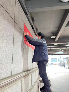 當(dāng)天的風(fēng)很大又冷,戴師傅的頭發(fā)都被風(fēng)吹得亂七八糟,臉也凍得通紅。投資廣場的業(yè)主看見戴師傅這樣子,紛紛上前關(guān)心說道“當(dāng)心感冒,喝點熱水”。“沒事沒事,我皮糙肉厚,沒事”。戴師傅一邊打趣的說道,一邊拍了一下身上的灰,扛上梯子,轉(zhuǎn)身又繼續(xù)忙活了。