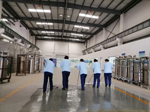 保潔阿姨和外圍師傅拿來各種工具準(zhǔn)備開干,保安師傅在一旁進(jìn)行協(xié)助。保潔阿姨們把各自負(fù)責(zé)的片區(qū)垃圾和灰塵全部清掃干凈,再用拖把一遍一遍的進(jìn)行徹底清潔,玻璃幕墻和門框的灰塵也全部都擦拭了一遍,連地縫的垃圾也都一一處理干凈。大家齊心協(xié)力把BC兩個車間的地面、墻面、玻璃以及門框進(jìn)行了徹底大清潔。很快,整座大樓的地面和角角落落都煥然一新。