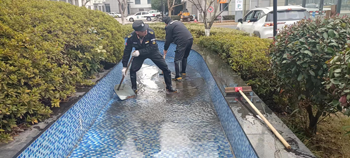 說干就干,項目主管組織員工拿上刷子、穿上雨靴跳進池子,池子里水位較高,我保安員們先把池子里的水放掉,再倒入清潔劑用刷子一點點地清洗,清洗完畢后再用抹布仔細擦拭。池子很大,每個邊邊角角都必須清理到位,保安員們一塊塊仔細清刷,不放過任何一個角落,最后在用干凈的水把所有污漬沖洗掉,再用抹布把邊邊角角仔細擦拭。就這樣經(jīng)過兩個多小時的辛苦打磨,水池被我們洗得锃光瓦亮,看著這么干凈的池子,我們所有付出的辛勞都是值得的。