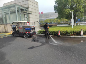 大清早,一輛灑水車和一名保安員正手持高壓水槍對場站路面進行沖洗,灑水車具有高壓清洗功能,他先是用灑水車進行沖洗,隨后再對沖洗出來的雜物進行清掃,人車相互配合,一會功夫,路面的細小垃圾、塵土和污漬等被一洗而凈。此次大清掃工作,對旅客營造了一個整潔、衛(wèi)生、安全的環(huán)境,并為迎接文明城市檢查奠定了有力的基礎。