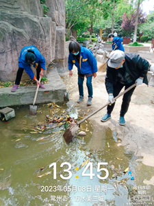 經(jīng)過(guò)一整個(gè)春天的沉淀,噴泉底部及內(nèi)壁留下了較大的污漬,給清洗工作帶來(lái)了一定的難度。為確保清洗工作的順利進(jìn)行,項(xiàng)目部全體保潔員先將噴泉池內(nèi)污水排干凈。然后采用由上至下的清洗程序,首先用水帶及噴水管對(duì)噴泉鐵質(zhì)蓋子及水池壁四周進(jìn)行刷洗,再對(duì)池底淤泥進(jìn)行了清洗,對(duì)污漬難以清洗的地方,保潔人員用鏟刀一點(diǎn)一點(diǎn)刮除。在清洗的同時(shí),對(duì)周邊綠化帶內(nèi)的雜物進(jìn)行清理,水池內(nèi)的腐爛植物垃圾進(jìn)行清理。類(lèi)似這種水池清理工作每隔一段時(shí)間都要進(jìn)行一次,物業(yè)嚴(yán)格按照水池管理、清洗標(biāo)準(zhǔn),定期進(jìn)行水池清理并對(duì)水池內(nèi)落葉、垃圾等每天進(jìn)行打撈以保證小區(qū)內(nèi)景觀池的干凈美觀。