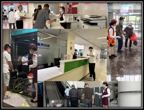 項(xiàng)目中有這樣一支隊(duì)伍,他們每天和上下電梯的乘客,和咨詢問(wèn)路的患者及家屬打著交道,他們是項(xiàng)目的禮儀部,那就是司梯工勤團(tuán)隊(duì)。假日期間,院區(qū)正常開(kāi)放門(mén)診,醫(yī)院患者也依然很多,