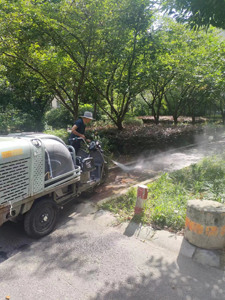上午8點(diǎn)半,在保潔隊(duì)長(zhǎng)的帶領(lǐng)下,大家各盡其責(zé)、相互配合,迅速展開青苔的清理工作。保潔隊(duì)長(zhǎng)和一名力氣大的保潔配合,一個(gè)開著高壓沖洗車穩(wěn)穩(wěn)前進(jìn),一個(gè)手握水管仔細(xì)沖洗,其余保潔員則負(fù)責(zé)路面清掃,爭(zhēng)取把這些頑固的青苔一次性清理干凈。經(jīng)過幾個(gè)小時(shí)的辛苦工作,青苔清理工作也已接近尾聲。大家看著身后打掃得干干凈凈的道路,都露出了心滿意足的微笑。