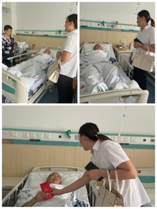 周經(jīng)理代表集團(tuán)領(lǐng)導(dǎo)及個(gè)人對(duì)張國(guó)順進(jìn)行了探視和慰問(wèn),并仔細(xì)了解其治療狀況和身體恢復(fù)情況,叮囑他安心養(yǎng)病,盡快恢復(fù)身體,大家在公司等著他健康歸來(lái)。周經(jīng)理特意帶來(lái)時(shí)令水果果籃,并代表公司向張國(guó)順?biāo)蜕狭宋繂?wèn)紅包。張國(guó)順表示對(duì)公司和周經(jīng)理的關(guān)懷和慰問(wèn)非常感動(dòng),他雙眼飽含淚水,一個(gè)勁地點(diǎn)頭說(shuō)好、好,感謝公司和大家對(duì)他的關(guān)懷,一定會(huì)好好養(yǎng)病,爭(zhēng)取能早日回歸隊(duì)伍!