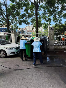 垃圾桶是小區(qū)業(yè)主日常生活垃圾的主要投放處,加上天氣炎熱,特別容易滋生蚊蠅、傳播細(xì)菌,為了給業(yè)主創(chuàng)造優(yōu)美、干凈、和諧的小區(qū)環(huán)境。項目部于近日安排保潔隊長和保潔員對小區(qū)北苑的垃圾桶進(jìn)行統(tǒng)一清洗工作。