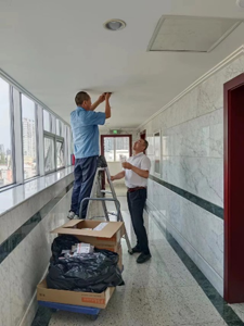 近日,接甲方領(lǐng)導(dǎo)通知,煙草大廈所有樓層包括辦公室LED燈都需要進(jìn)行更換,接到任務(wù)后,保安隊(duì)長(zhǎng)與維修工陳師傅一起,從頂樓十四層開始,一層一層地更換。